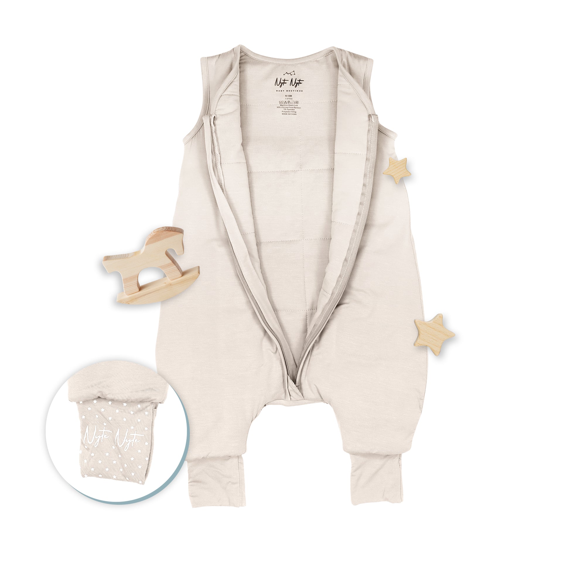 Our innovative separate leg design allows your baby to sleep comfortably and freely, while our adjustable cuffs let you cover or uncover baby's feet depending on the season or room temperature. Our foot cuffs also have anti-slip grip allowing your baby to wear the Nyte Nyte while crawling and walking around without slipping.