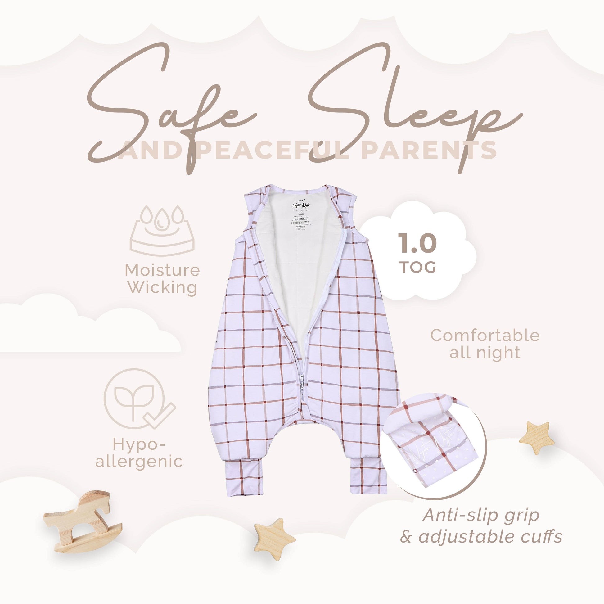 Our innovative separate leg design allows your baby to sleep comfortably and freely, while our adjustable cuffs let you cover or uncover baby's feet depending on the season or room temperature. Our foot cuffs also have anti-slip grip allowing your baby to wear the Nyte Nyte while crawling and walking around without slipping.