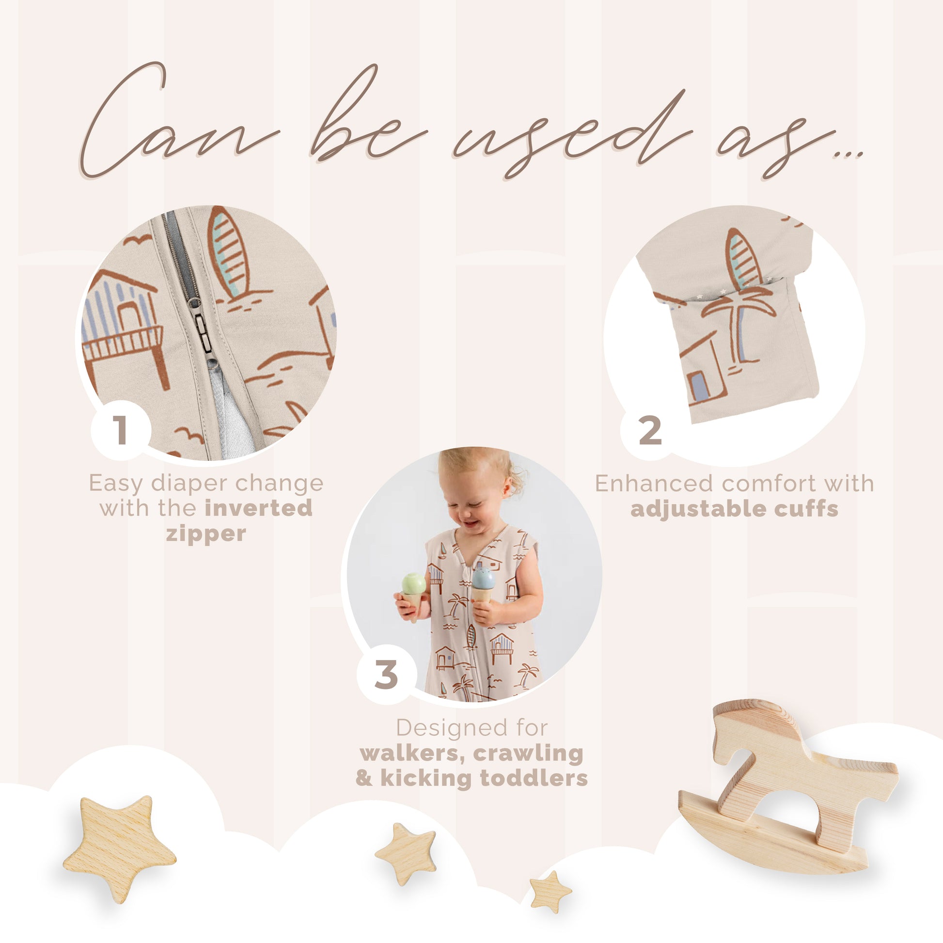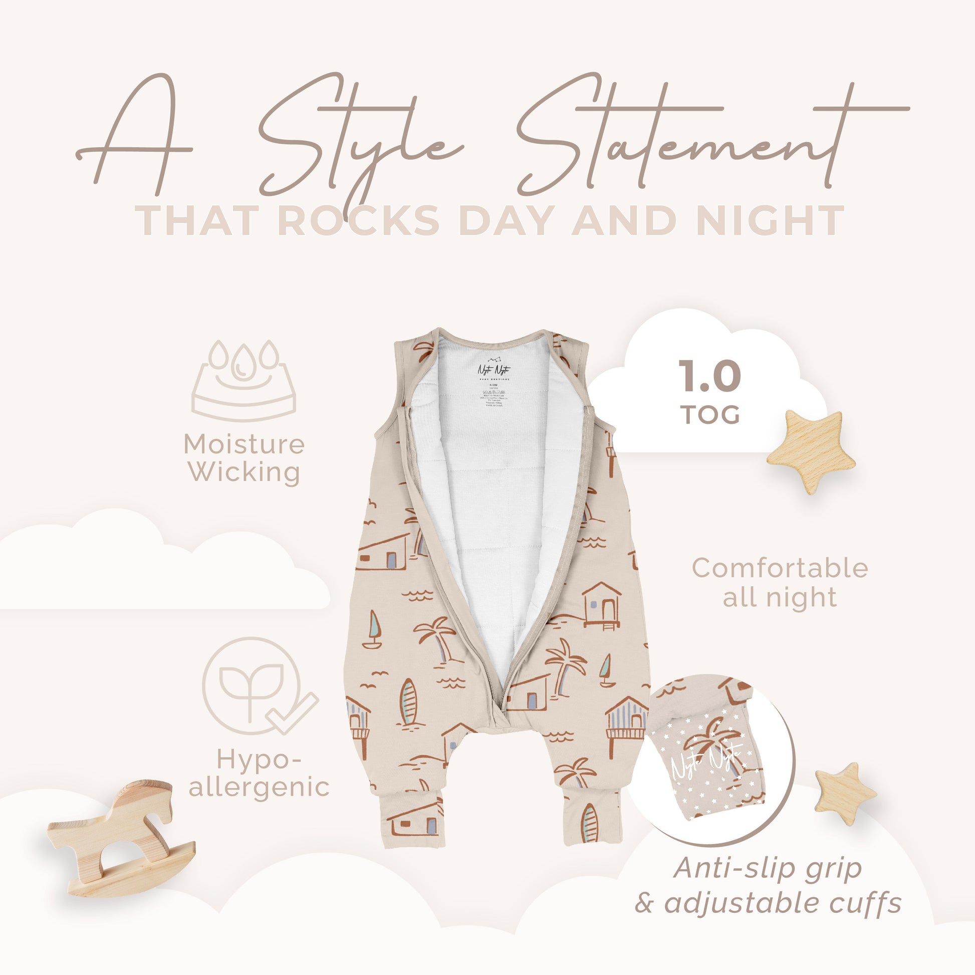 Our innovative separate leg design allows your baby to sleep comfortably and freely, while our adjustable cuffs let you cover or uncover baby's feet depending on the season or room temperature. Our foot cuffs also have anti-slip grip allowing your baby to wear the Nyte Nyte while crawling and walking around without slipping.