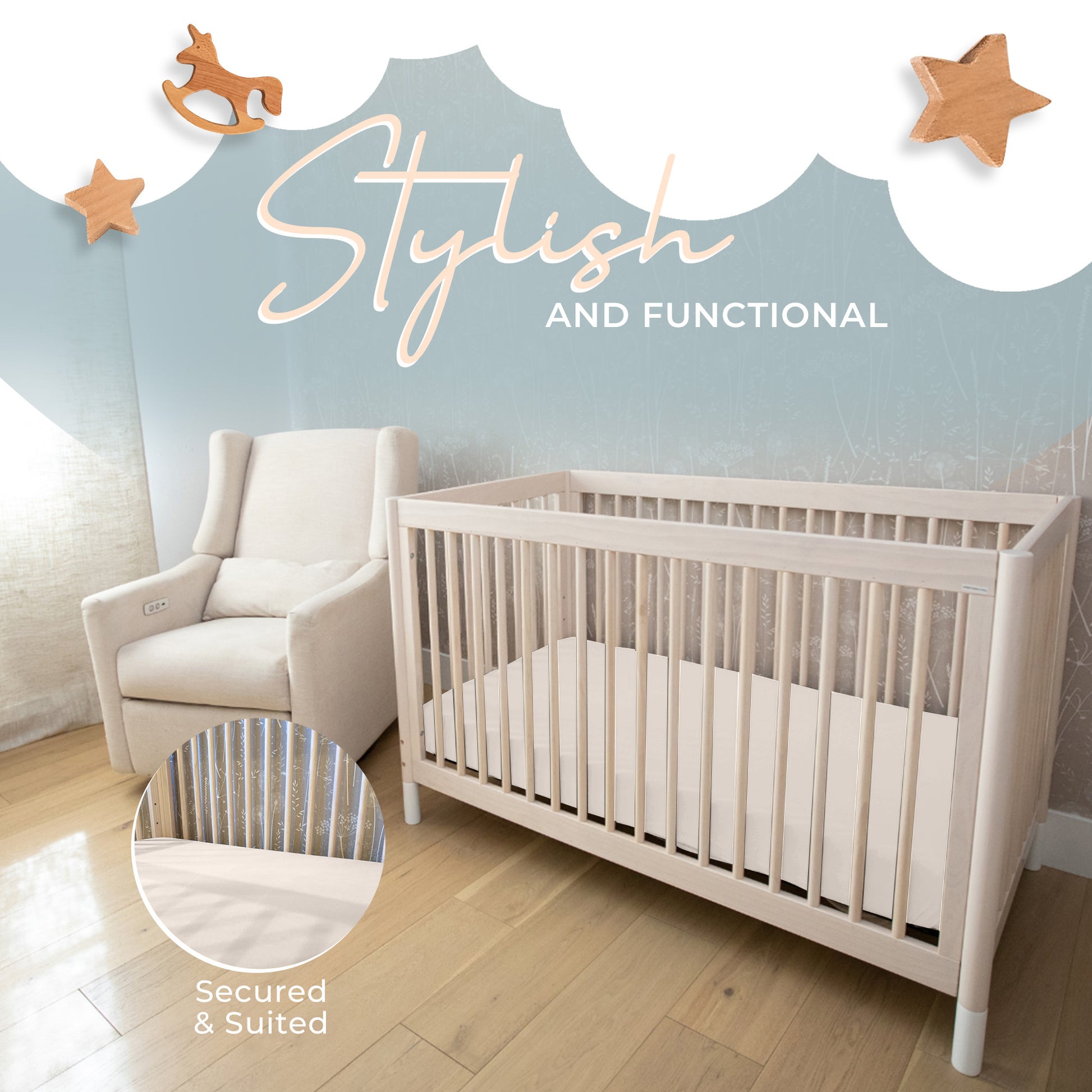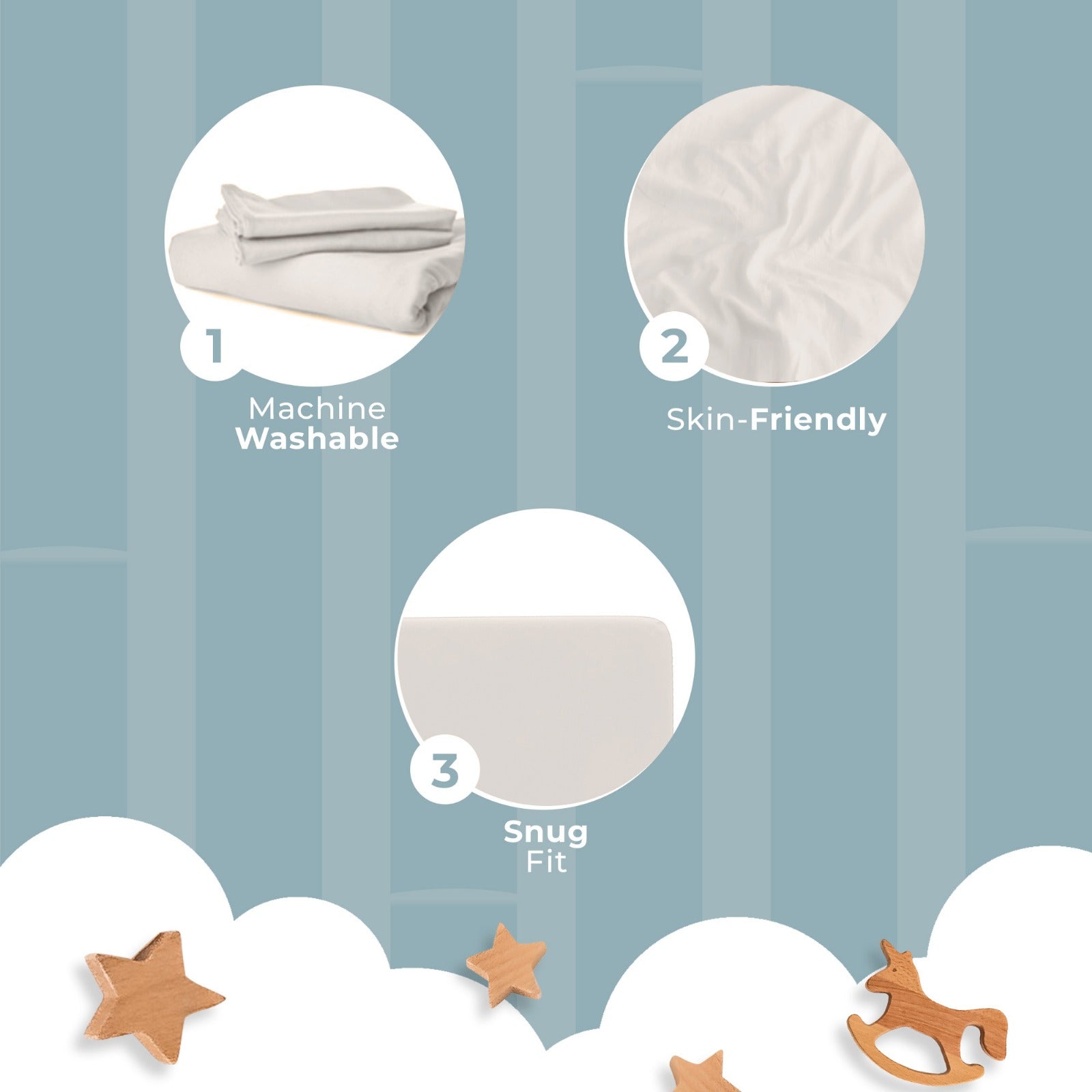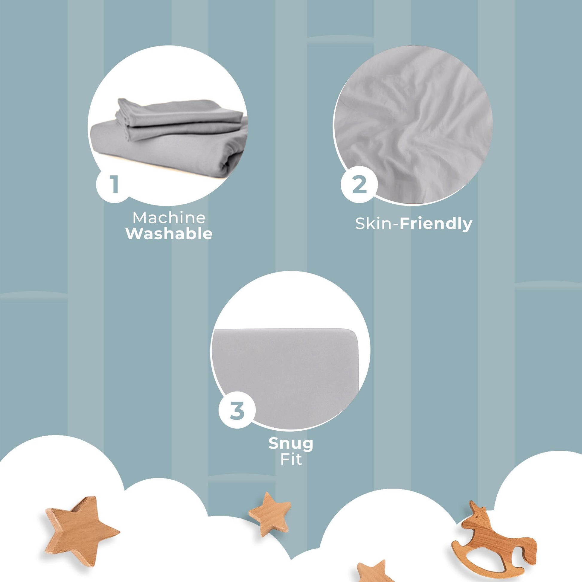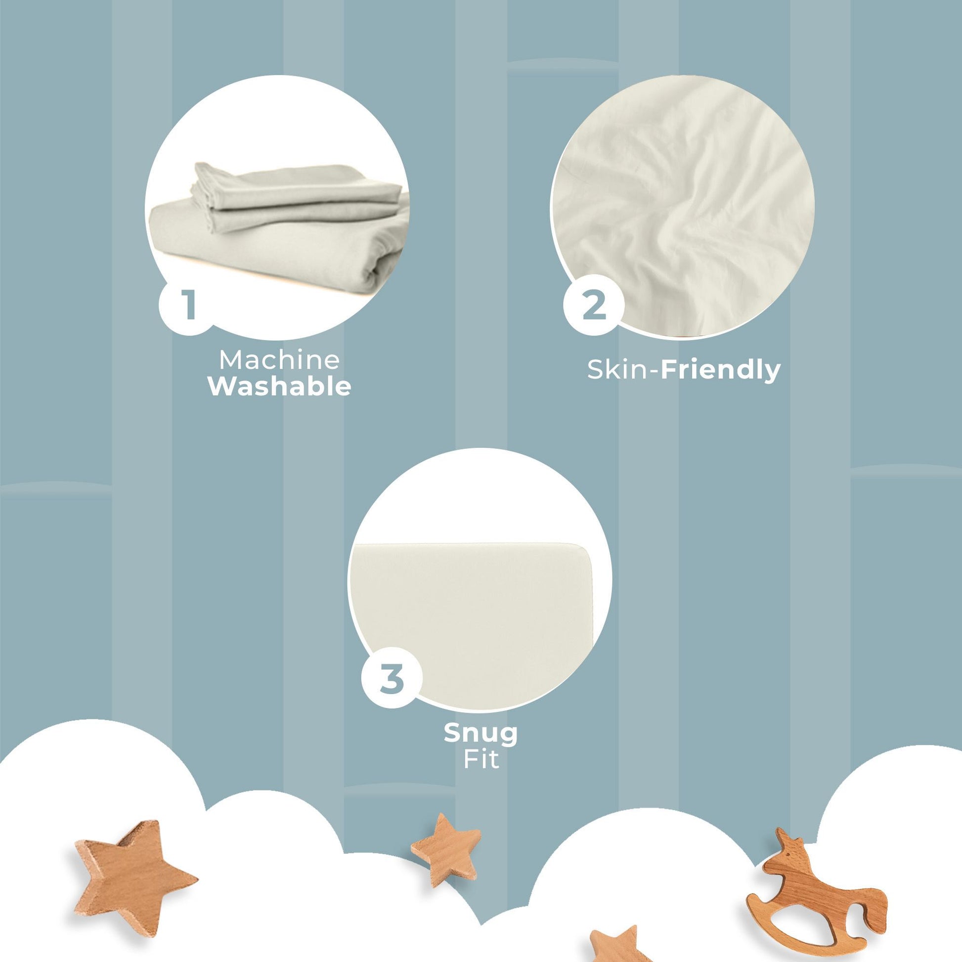 We know parents are busy, so we've chosen fabric that is not only soft and hypoallergenic, but is safe for the washing machine! We recommend washing on a cold cycle and avoid using laundry products that contain harsh chemicals, additives, optical brighteners, or bleach. We do not recommend drying your crib sheet in the dryer. Lay flat or hang to air dry.