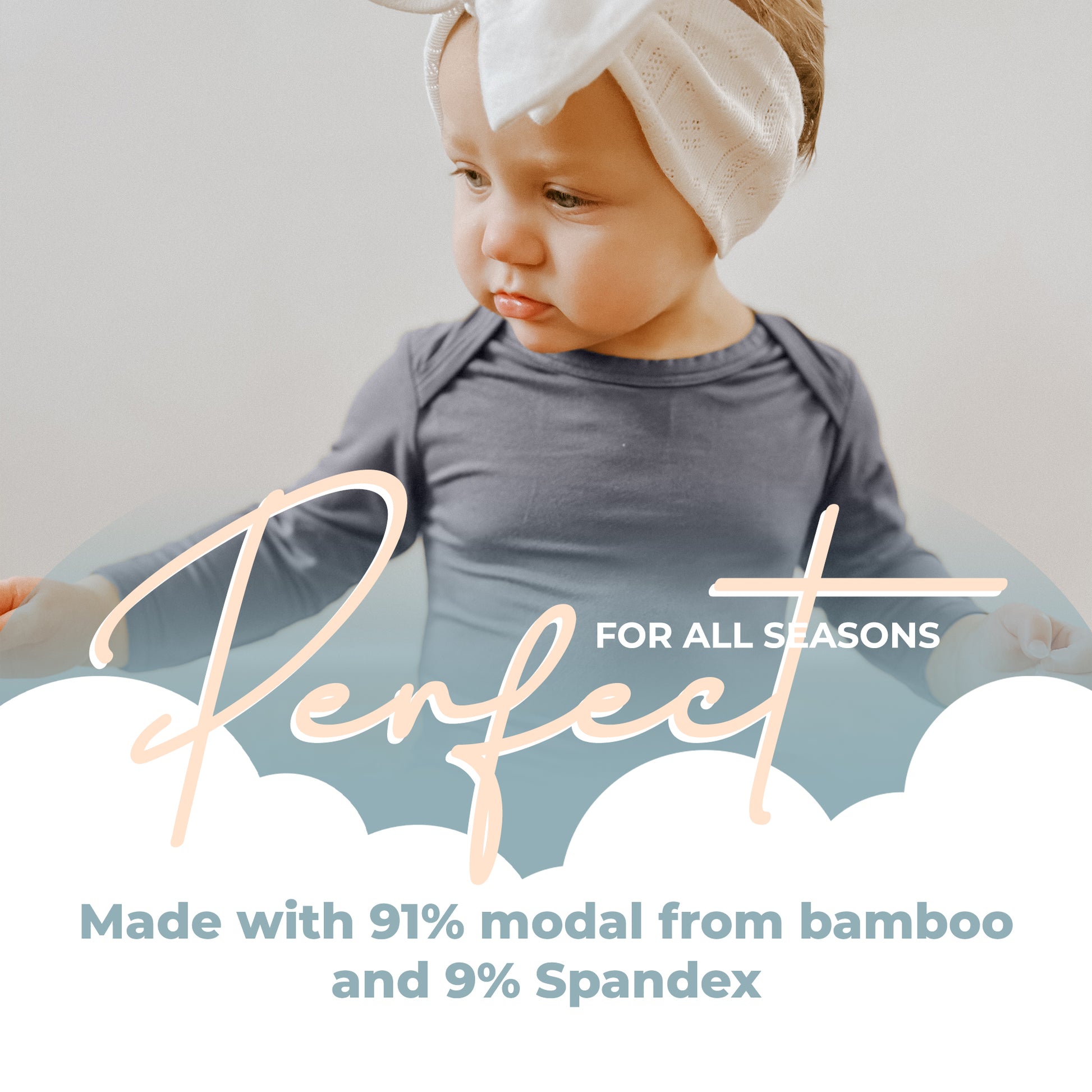 But wait, it gets even cuter – our fabric is now softer than ever, like a cloud made of eco-friendly 91% Tencel modal (the fancy kind of bamboo) and a dash of 9% spandex for that extra stretchy snuggle. Featuring convertible mittens for preventing accidental scratches, extendable shoulders, and snap closure, our onesie ensures easy and convenient changes for you and your little one.