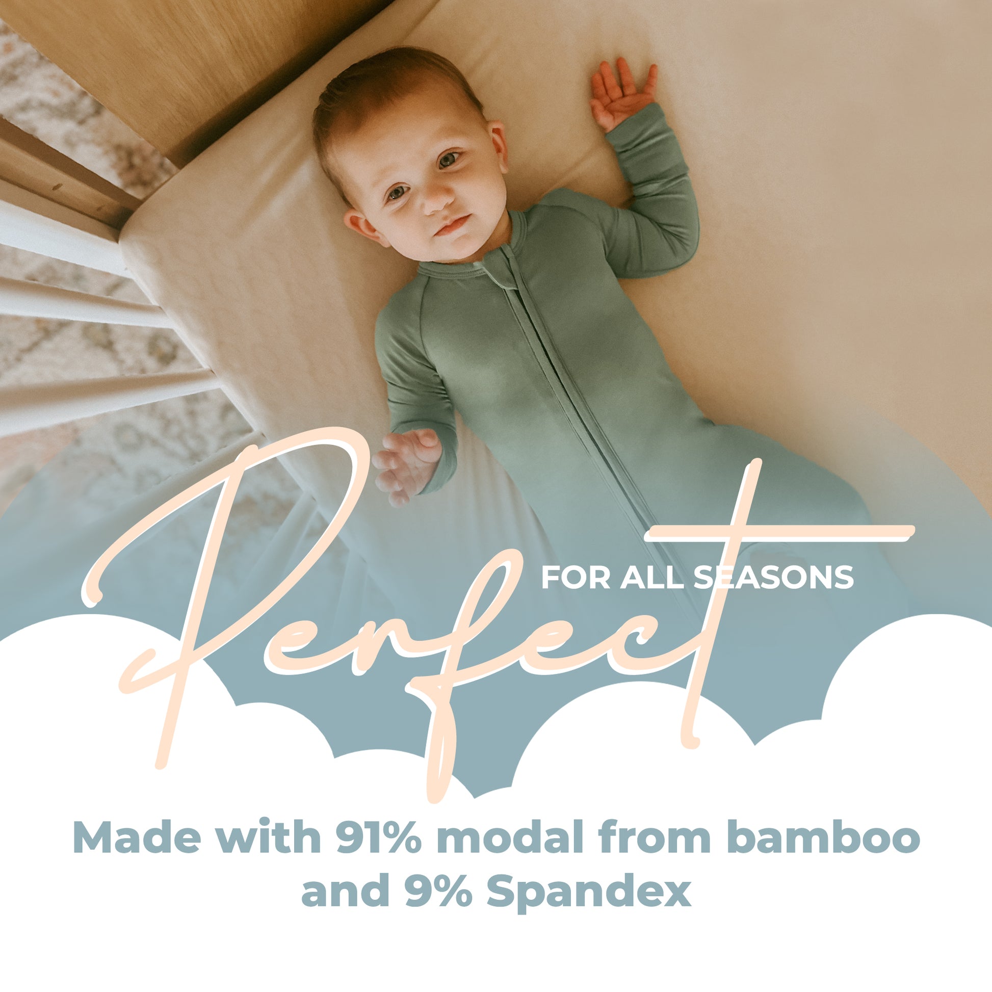 Crafted with 95% Viscose and 5% spandex, our sleeper is a cloud-like embrace that your little one will love. The inverted zipper ensures seamless nighttime changes, while the adjustable mittens add an extra layer of warmth and care. The cuffs, adorned with anti-slip grip, make every little wobble and crawl a confident adventure.